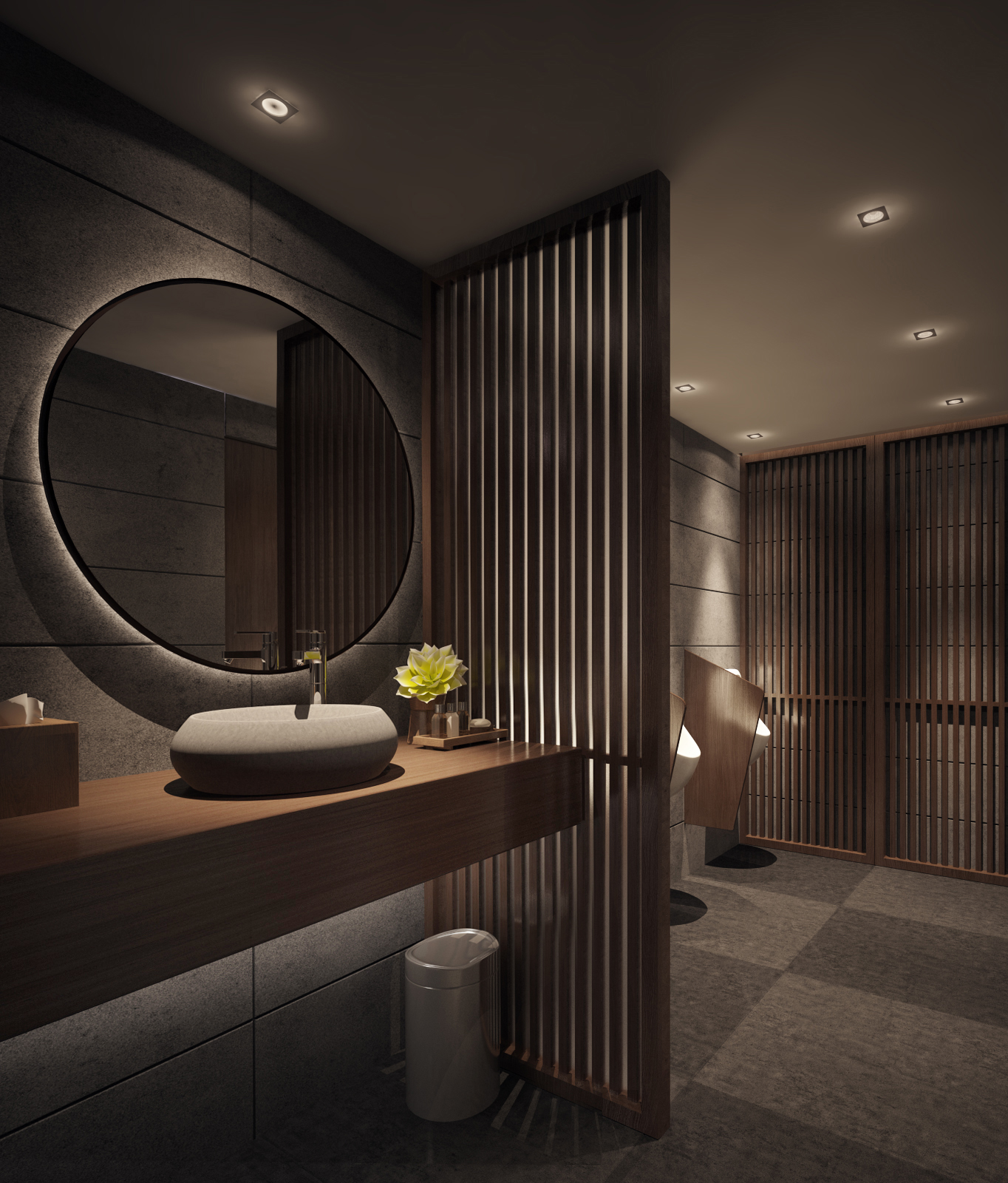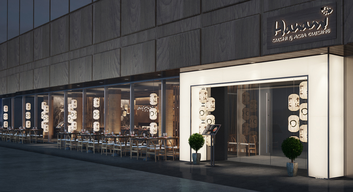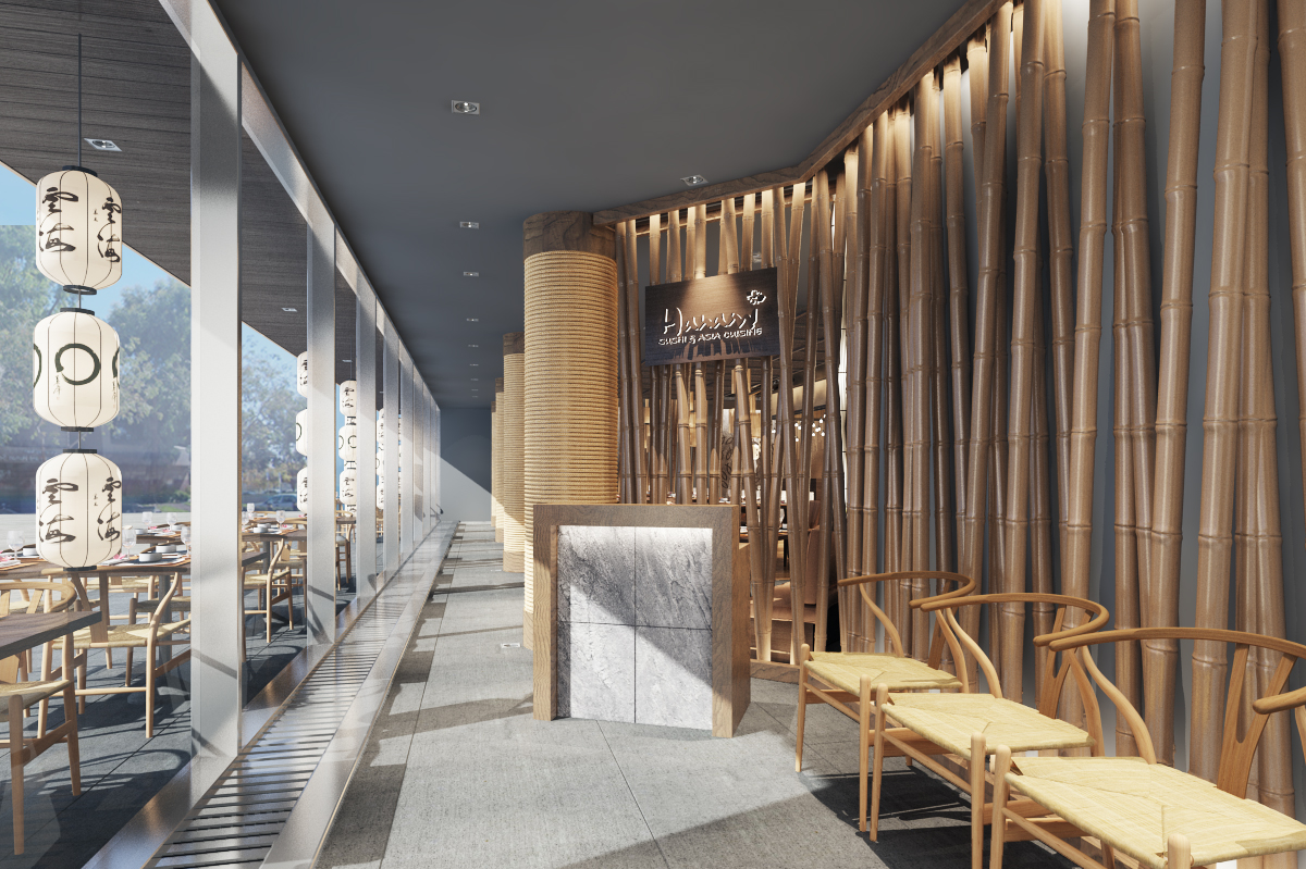 Nhà hàng Nhật Bản tọa lạc tại tầng trệt của một khu trung tâm thương mại, mang đậm phong cách thiết kế hiện đại và sang trọng. Mục tiêu chính của thiết kế là tạo ra một không gian thoải mái và dễ chịu cho thực khách, đồng thời vẫn giữ được nét đặc trưng của văn hóa Nhật Bản. Các yếu tố truyền thống như đèn lồng, ký hiệu tiếng Nhật, và lam gỗ được khéo léo kết hợp, tạo nên những điểm nhấn tinh tế, giúp không gian vừa hiện đại, vừa giữ được sự ấm cúng và thân thiện.