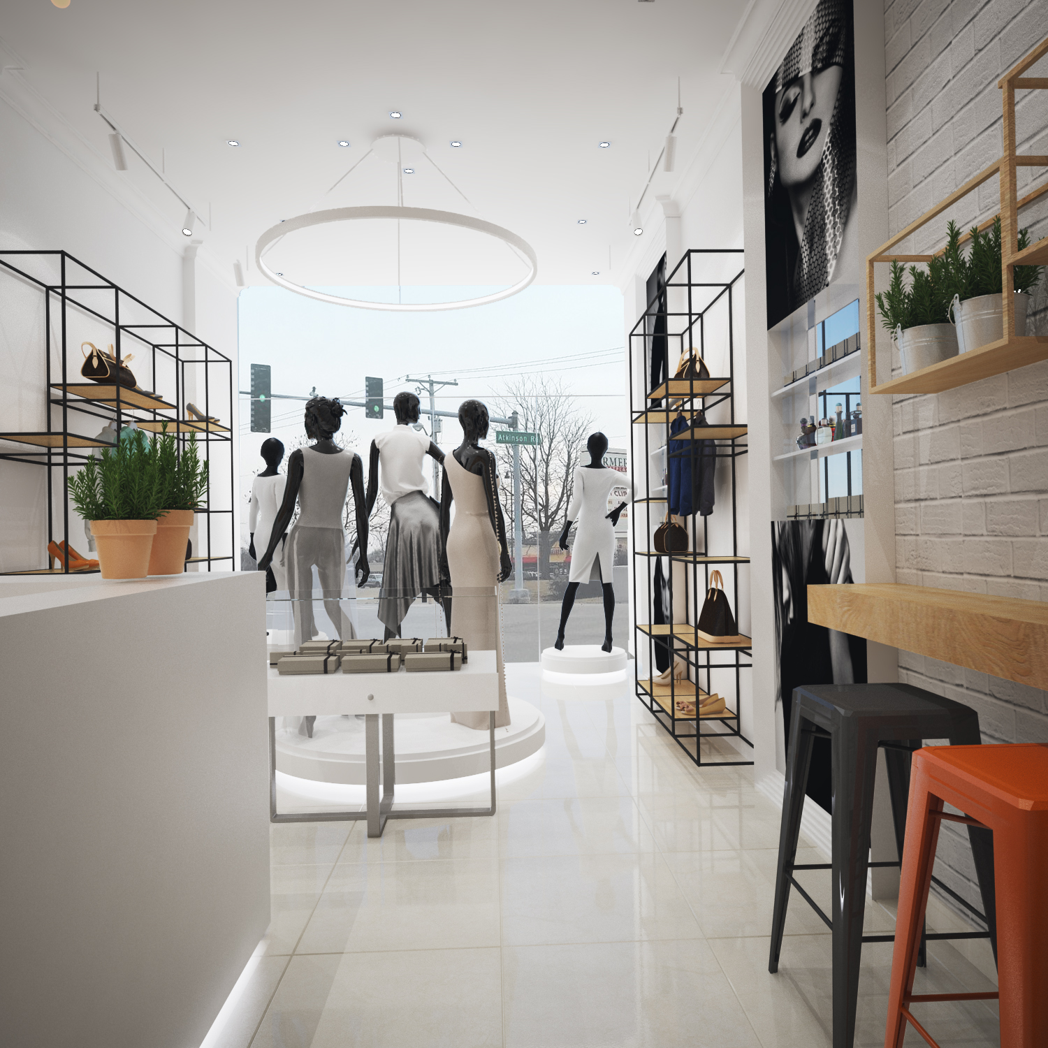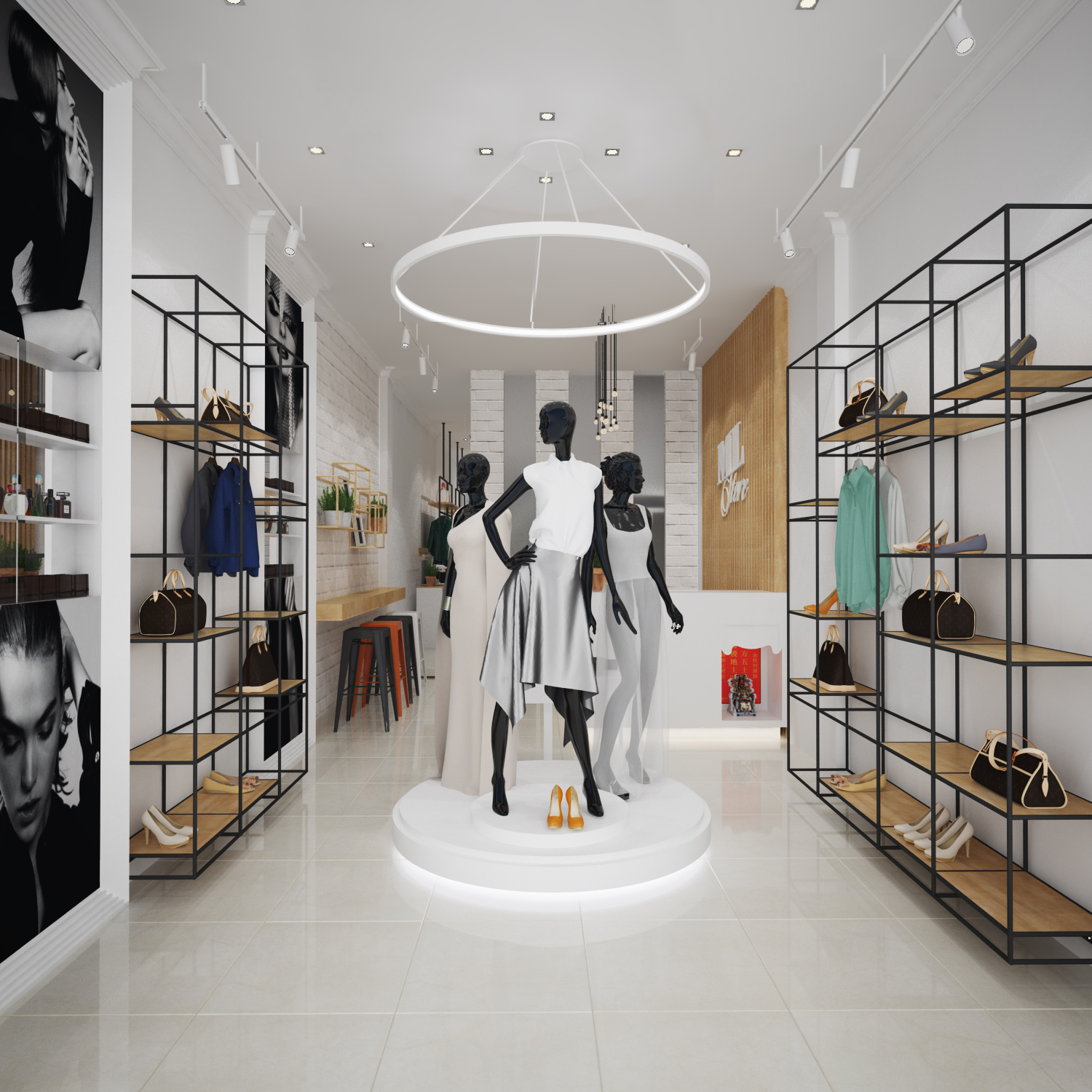 Shop thời trang có diện tích nhỏ, được cải tạo từ mô hình nhà phố, vì vậy việc tối ưu hóa không gian để đảm bảo tính tiện dụng và khả năng trưng bày hiệu quả các sản phẩm là yếu tố quan trọng trong thiết kế. Mỗi chi tiết đều được tính toán kỹ lưỡng nhằm tạo ra một không gian bắt mắt, giúp các sản phẩm thời trang nổi bật, thu hút sự chú ý của khách hàng.