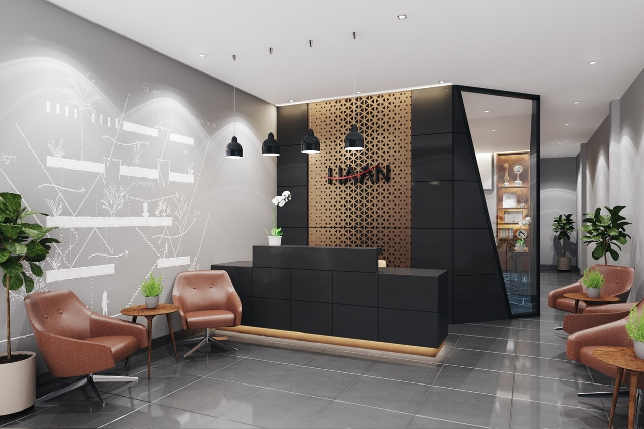 Bên cạnh đó, các góc cây xanh được bố trí hài hòa trong không gian, mang lại cảm giác thư giãn và kết nối với thiên nhiên. Yếu tố này không chỉ góp phần làm dịu không khí mà còn tạo môi trường làm việc trong lành, khơi nguồn cảm hứng và nâng cao năng suất cho nhân viên. Sự kết hợp giữa yếu tố hiện đại và mảng xanh tự nhiên giúp văn phòng trở thành nơi làm việc lý tưởng, vừa đẳng cấp vừa gần gũi.
